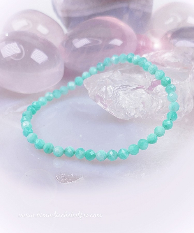 3. Amazonit Edelsteinarmband, facettiert 4mm - Erzengel Gabriel, Kraft, Selbstvertrauen, Auraschutz, im Fluss sein