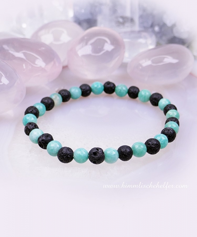 3. Amazonit mit Lava Armband auf elastischem Band ca. 6mm Kugeln - Kraft des Feuers, Selbstvertrauen, Auraschutz, im Fluss sein