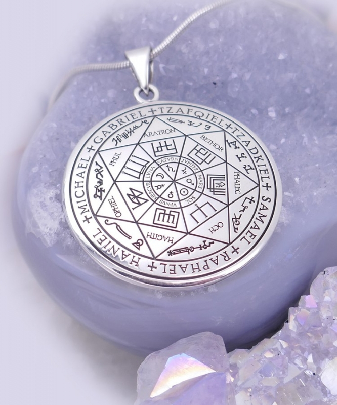 Auf diesem Engelamulett aus Silber zeigen sich Sigillen, diese Zeichen stehen in enger Beziehung mit den jeweiligen Engeln und erinnern uns an ihren Schutz und ihre Gegenwart.