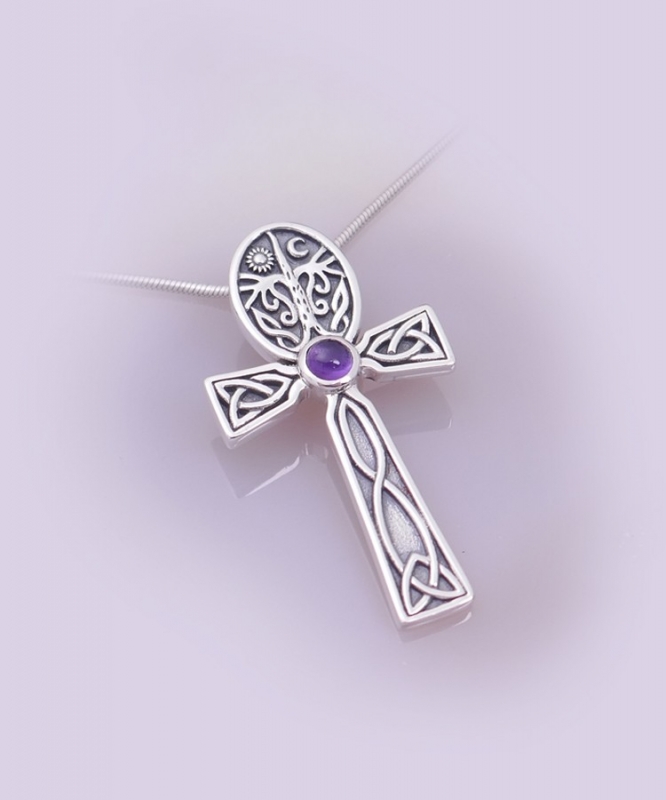 Ankh Anhänger aus 925er Sterling Silber, Amethyst, Größe Ankh Anhänger ca. 4cm x 2,2cm