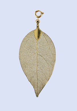 Wunderschönes Blatt des Bodhibaums von Blumenkind®. ***CHARM: Zum Einhängen in Ketten*** Jedes Blatt ist einzigartig und ein Unikat der Natur, Abweichungen bei der Größe möglich - ionenplattiert in IP Gold. Größe des Blatts ca. 8cm x 3,8cm Material: 316L Stahl, Anti-allergisch, sehr gute Hautverträglichkeit. Legierung durch Ionisierung, der Schmuck läuft nicht an.Original Blumenkind-Anhänger, erkennbar an der Lasergravur mit Peacezeichen auf der Rückseite des Anhängers.