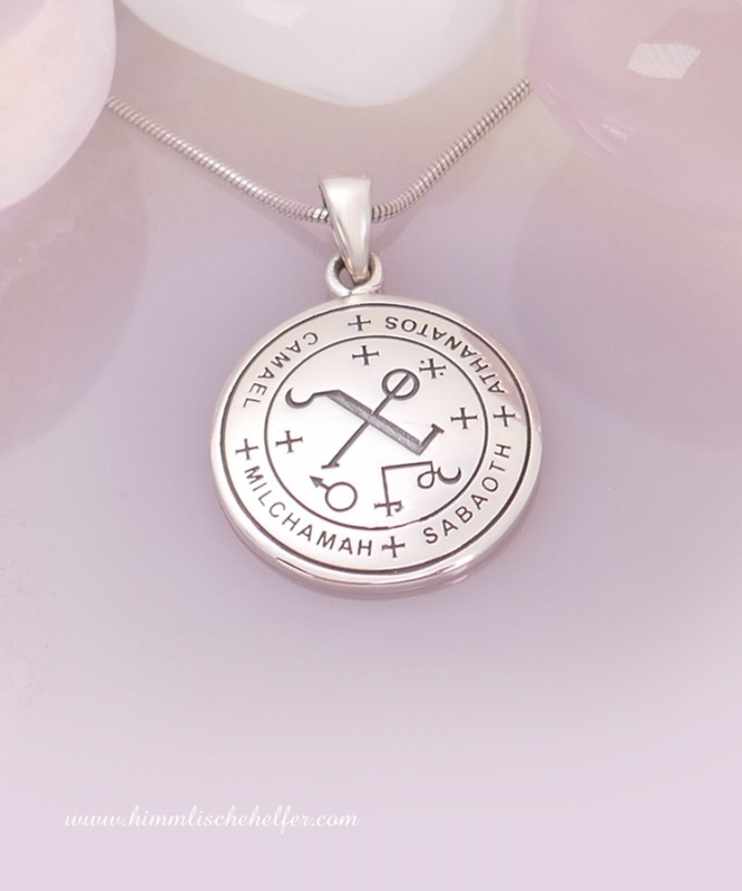 Auf diesem Engelamulett aus Silber zeigen sich Sigillen, diese Zeichen stehen in enger Beziehung mit Erzengel Chamuel, dem Engel der Liebe. Ein Kettenanhänger, der uns mit Erzengel Chamuel verbindet und uns an seinen Schutz und seine Gegenwart erinnert.