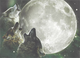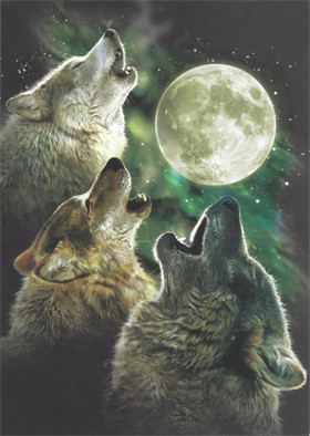 Ein wunderschönes geheimnisvolles Motiv mit drei Wölfen, die unter dem klaren Sternenhimmel den Mond anheulen. Der Wolf symbolisiert Führung, Schutz, Kraft und innere Stärke. Unter seinesgleichen sucht er die Gemeinschaft, auf der anderen Seite ist er scheu. Es heißt, der Wolf weiht in altes Wissen ein, er gilt somit als Lehrer" und sein soziales Wesen zeichnet ihn aus. Der Wolf hat vor allem in der Indianerkultur einen hohen Stellenwert.Die unsichtbare Welt hinter der rationalen sichtbaren Welt zu entdecken, das ist das wahre Abenteuer des Lebens!
