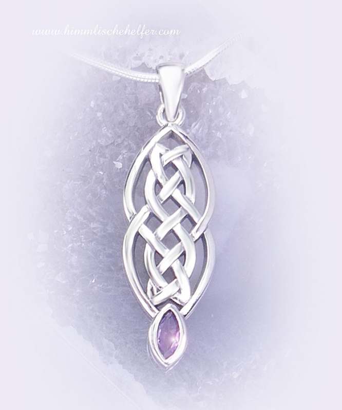 Ein doppelter unendlich verschlungener keltischer Knoten voller Zauber, er symbolisiert die Unendlichkeit der Liebe und verspricht Schutz und Segen - ohne Anfang und Ende, verbunden und gemeinsam stark. Keltische Knoten symbolisieren Glück, Schutz und Segen. Sie verbinden uns mit der sagenhaften und mystischen Welt der Kelten und bringen uns in Verbindung mit einer alten Kultur voller Zauber und Magie. Wunderschönes keltisches Amulett, keltischer Knoten mit einem gefassten Amethyst. Silberschmuck in filigraner Ausarbeitung, edles kunstvolles Schmuckdesign. Keltischer Silberschmuck aus 925er Sterling Silber, Lieferung ohne Kette (fotografiert mit einer Schlangenkette 1,2mm) in einem hübschen Organza Täschchen. Größe keltischer Knoten inkl. Aufhängung 4cm x 1,1cm.