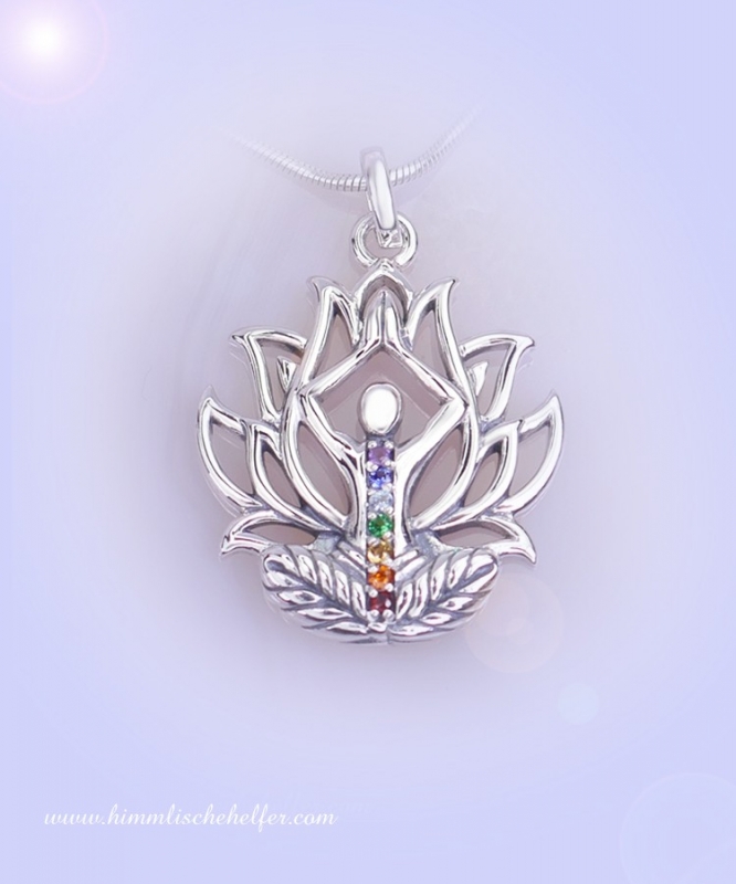 Yoga Lotus Chakra Anhänger aus 925er Silber, Größe inkl. Aufhängung ca. 3,6cm x 2,6cm