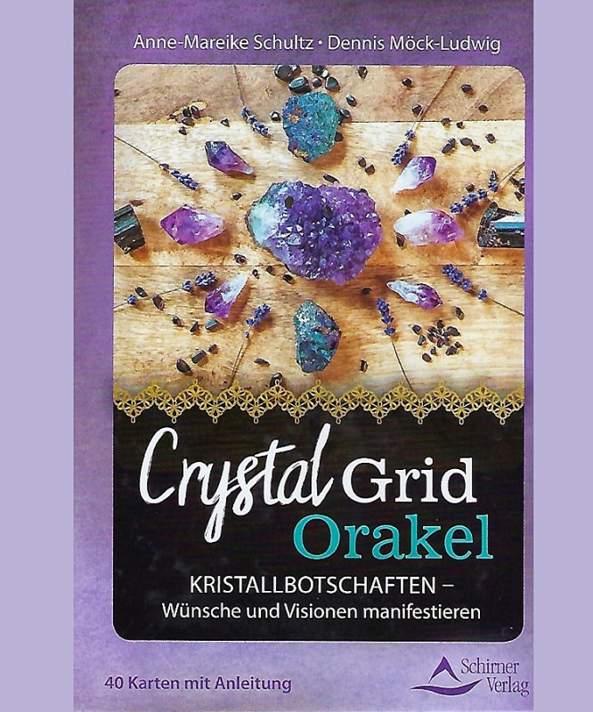 Crystal Grid Orakel von Anne-Mareike Schultz und Dennis Möck-Ludwig. Kristallbotschaften und Visionen manifestieren. 30 wirksame Kristallmandalas und 10 kraftvolle Kristallbotschaften. Umfang: 40 Karten und Anleitungsbüchlein mit 15 Seiten Umfang. ISBN 978-3-8434-9145-7