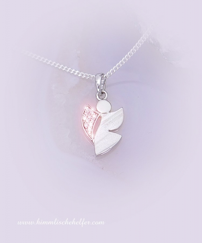 Schutzengel Anhänger, 925er Sterling Silber, Zirkonia, Länge mit Aufhängung 2cm x 1,1cm