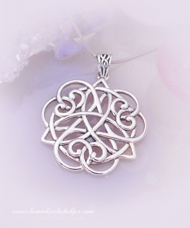 Ein wunderschönes keltisches Schutzamulett, das die stärksten Schutzssybole aus alter Zeit miteinander verbindet. Triskel, Triquetra kunstvoll ineinander verschlungen und im Kreis der Einheit und Vollendung zu einem machtvollen Amulett verwoben. Liebevolle Einheit und Verbundenheit mit der Schöpfung, Schutz auf höchster Ebene, Harmonie und Verbindung zu den himmlischen Kräften, im Einklang mit der Natur im endlosen Kreislauf des Lebens. Ein Amulett für Lebensenergie, innere Stärke, Balance und Harmonie, es bringt in Fluss mit dem Leben und wehrt negative Energien ab.