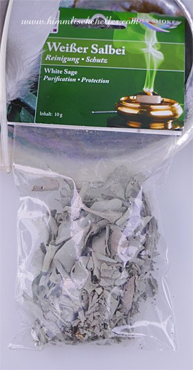 Diese Räucherung reinigt die Atmosphäre und zieht gute Energien an. Sie klärt das Bewusstsein und hat eine starke Schutzwirkung. Der weiße Salbei eignet sich für Reinigungszeremonien, für Schutzzeremonien und bereitet auf Rituale vor, indem sie unser Bewusstsein klärt.